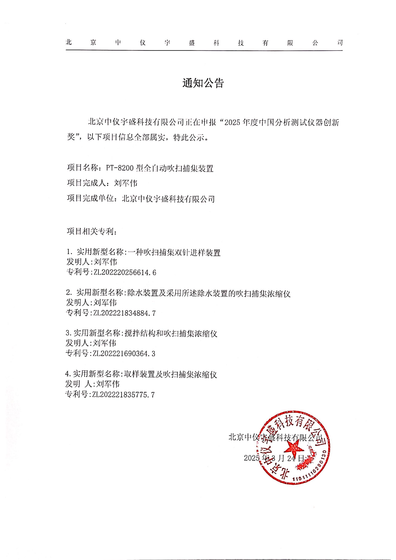 • 關(guān)于北京中儀宇盛申報(bào)“2025年度中國分析測(cè)試儀器創(chuàng)新獎(jiǎng)”的 2025-03-24